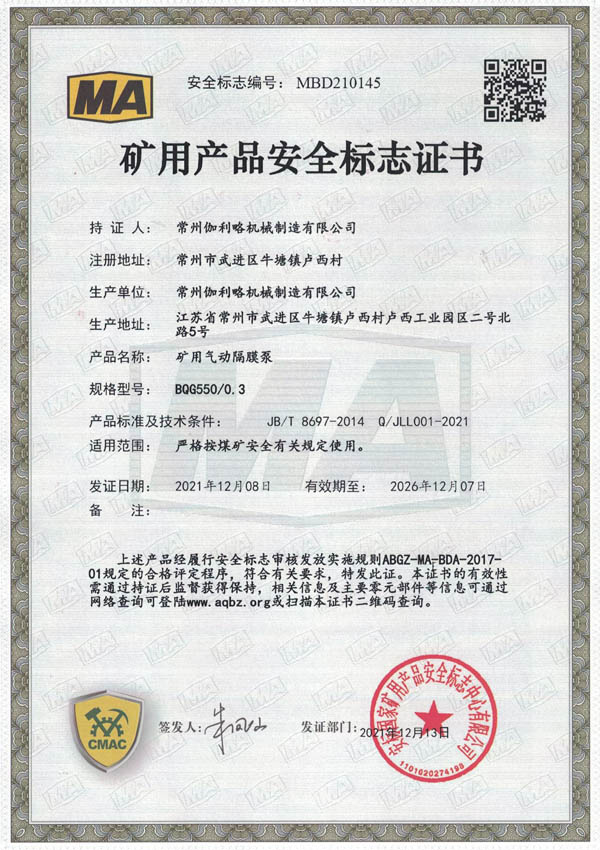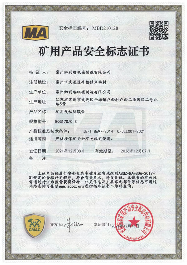 • 礦用安全標志證書-BQG170/0.3